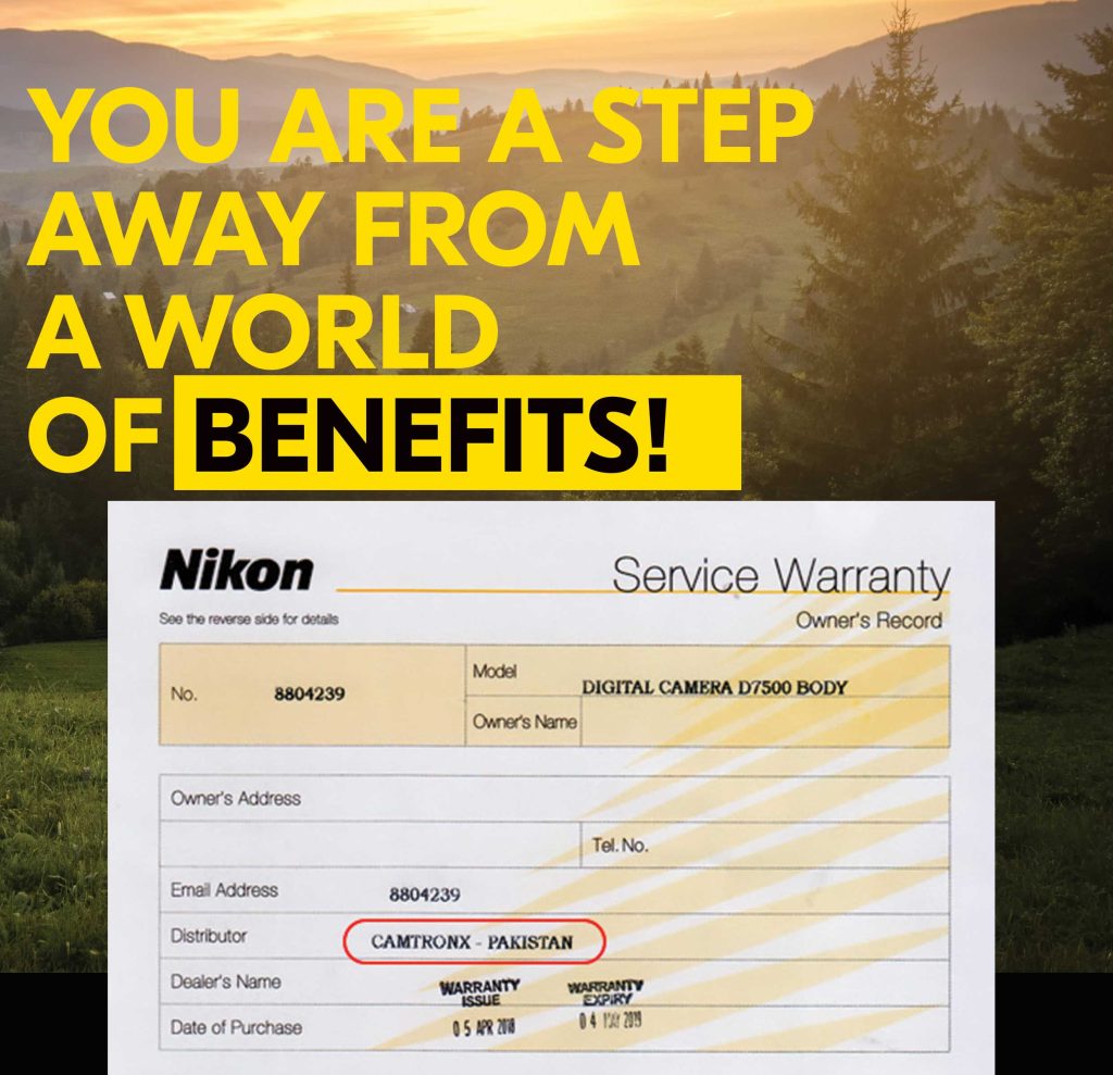 Always insist on receiving both the Camtronx Warranty Card and Camtronx Shrink-Wrap Packaging with your purchase of Nikon products in Pakistan.