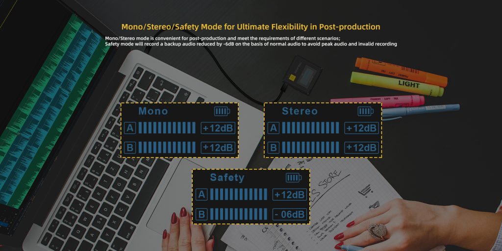 Mono/Stereo/Safety Mode for Ultimate Flexibility in Post-production