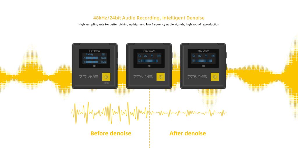 Immerse yourself in studio-quality audio with the DW20’s 48kHz/24bit recording capability and intelligent denoise technology. Perfect for the discerning tastes of the 7Ryms Microphone users in Pakistan, this feature guarantees pristine sound quality with minimal background noise.</>
