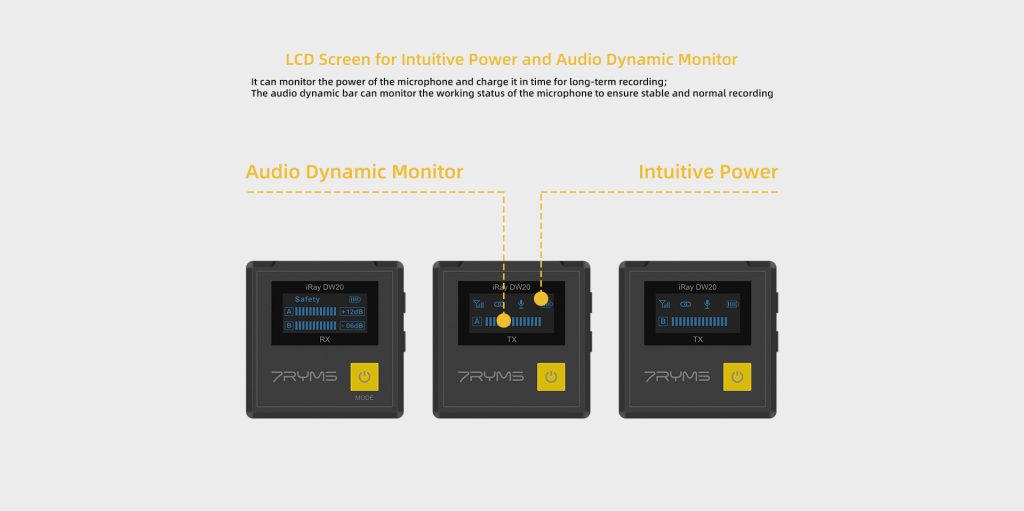 Tailor your audio output with the DW20’s mono, stereo, and safety modes, providing ultimate flexibility in post-production. This feature empowers the 7Ryms Microphone users in Pakistan with creative control over their recordings, ensuring a customized and professional touch.</>