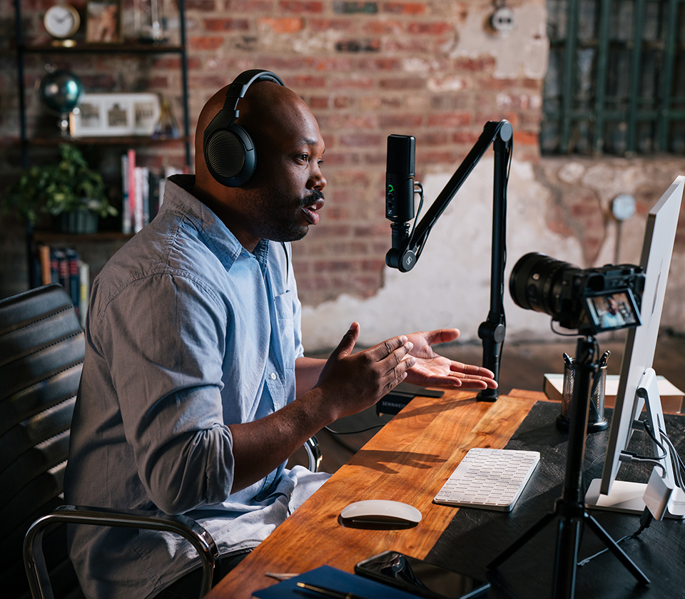 Form and function</>Quality audio is all about microphone placement. The Profile Streaming Set features a boom arm with a sleek and modern design, ideal for on-camera applications. Integrated cable management and an included 3 m USB-C cable provide flexibility with positioning and help to remove clutter from your workspace. For best results, place the Profile within 15 cm (6 in) of the sound source to ensure clarity and warmth in your sound.</>