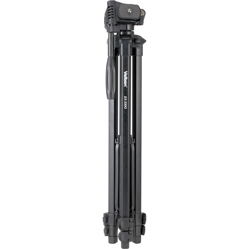This EX-330Q Tripod with 3-Way, Pan-and-Tilt Head supports up to 4.4 lb, measures 19.9″ when folded, and includes a quick release plate. Its 3-section legs each feature flip locks for fast deployment, and can be positioned for a minimum height of 19.7″ to a maximum height of 45.3″, or 57.5″ with its push-and-pull, rapid center column fully raised. An integrated center brace allows the legs to be spread simultaneously as well as uniformly, and helps to hold them in place. A rubber foot is included on the bottom of each leg, further enhancing stability on a wide variety of surfaces.